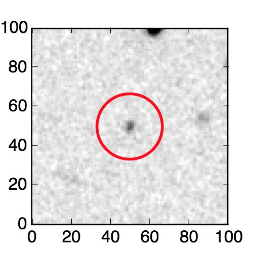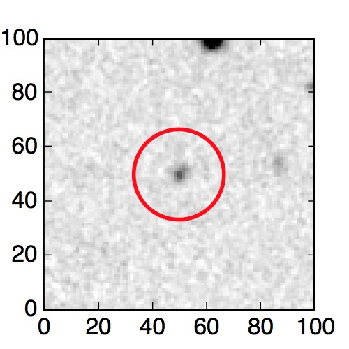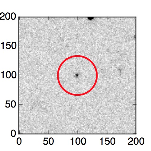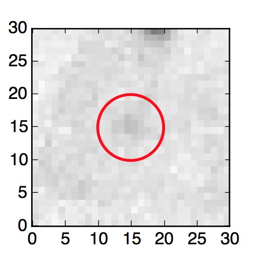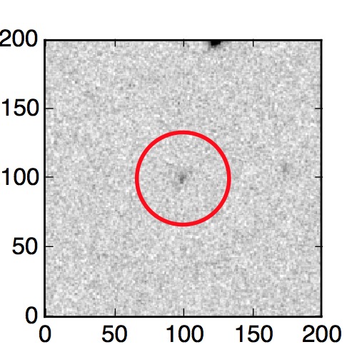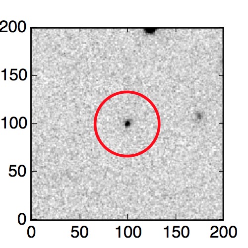 The red circle in the various panels is 1" in radius. The images are 6"x6".