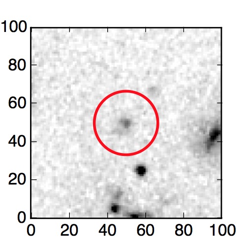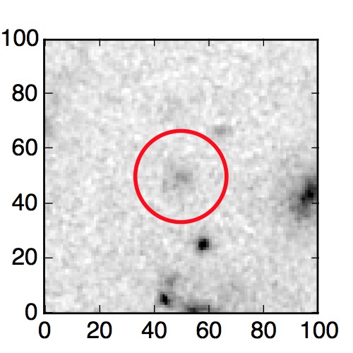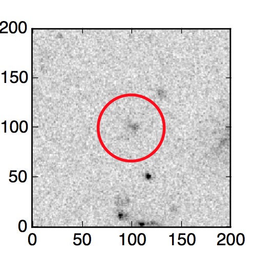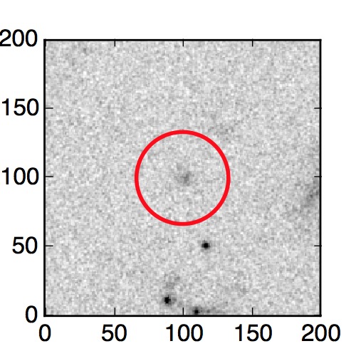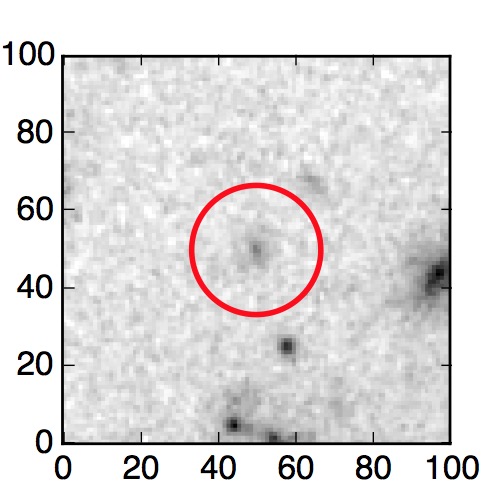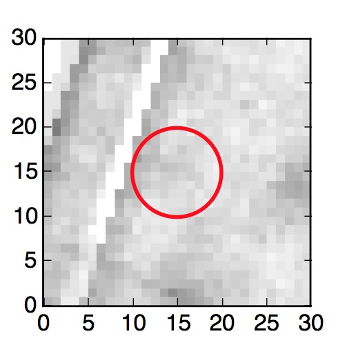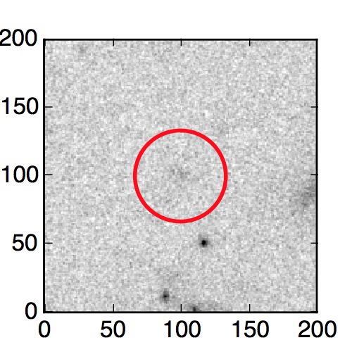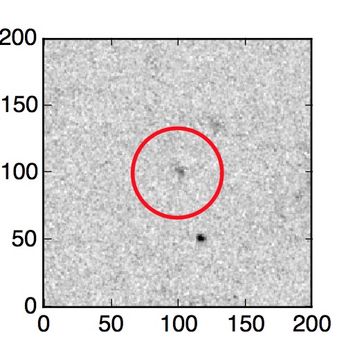 The red circle in the various panels is 1" in radius. The images are 6"x6".
