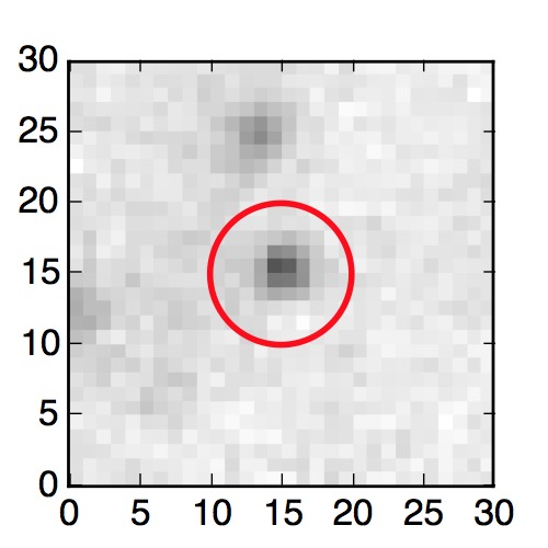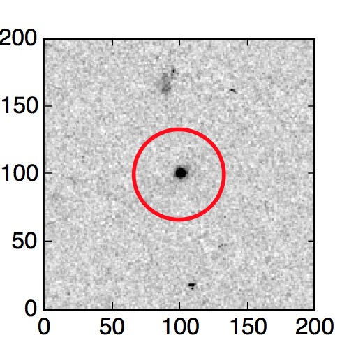 The red circle in the various panels is 1" in radius. The images are 6"x6".