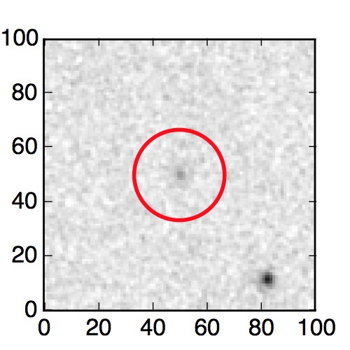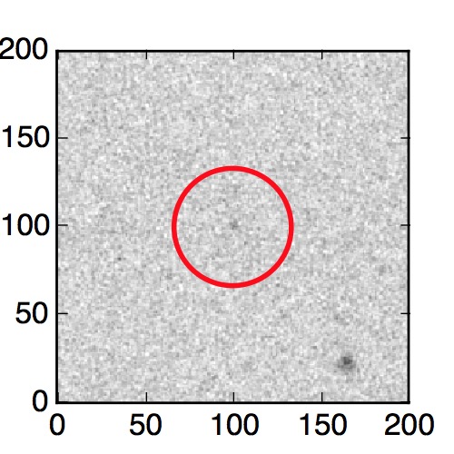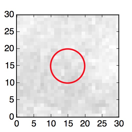 The red circle in the various panels is 1" in radius. The images are 6"x6".