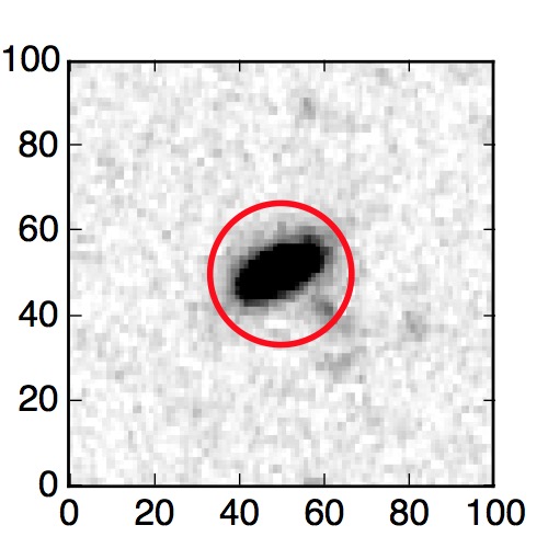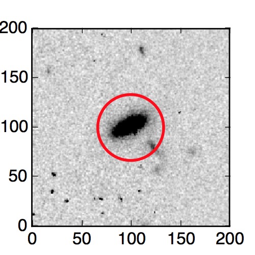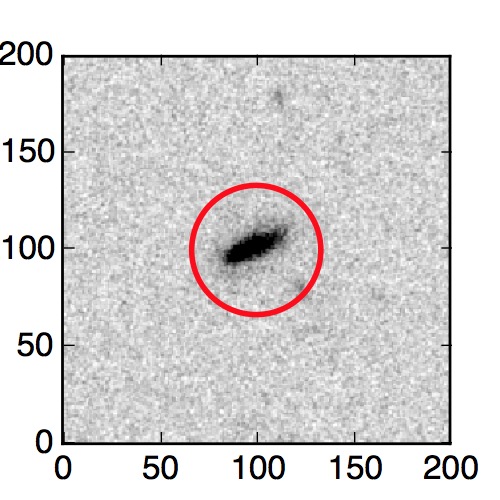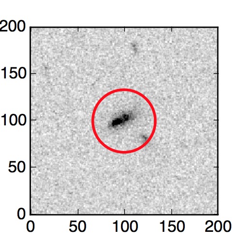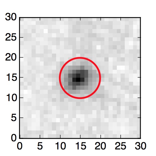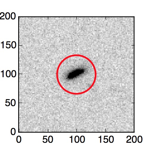 The red circle in the various panels is 1" in radius. The images are 6"x6".