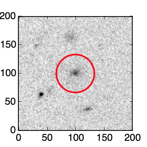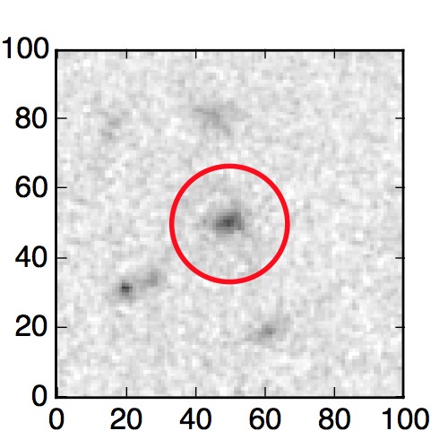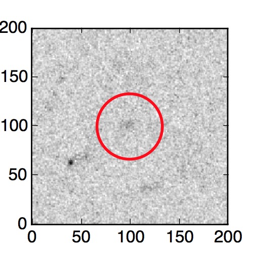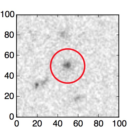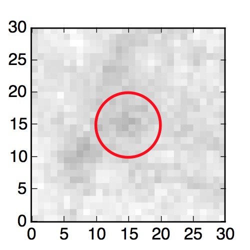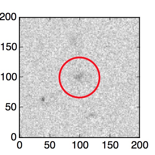 The red circle in the various panels is 1" in radius. The images are 6"x6".