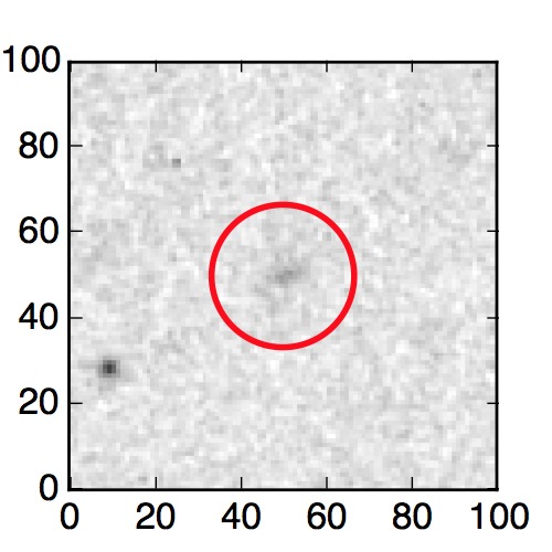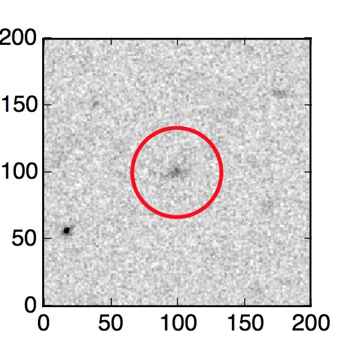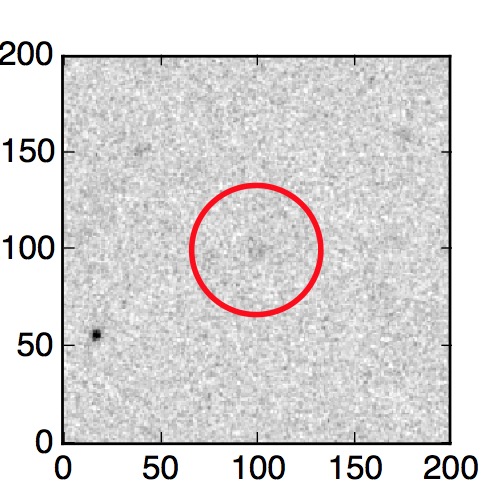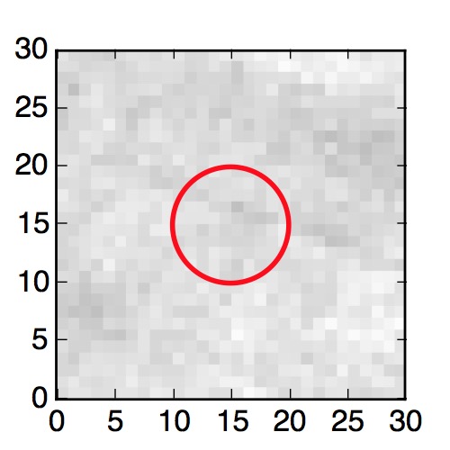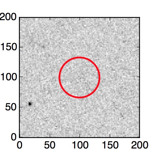 The red circle in the various panels is 1" in radius. The images are 6"x6".