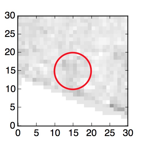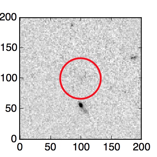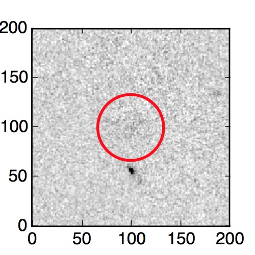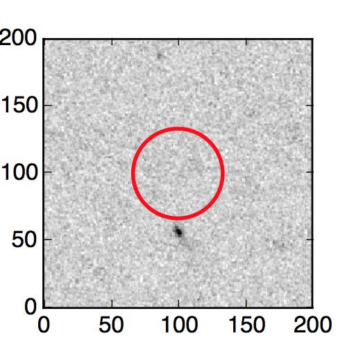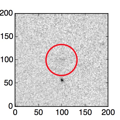 The red circle in the various panels is 1" in radius. The images are 6"x6".