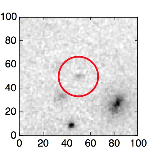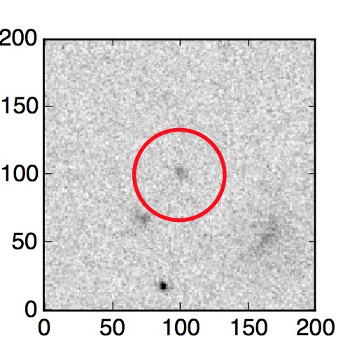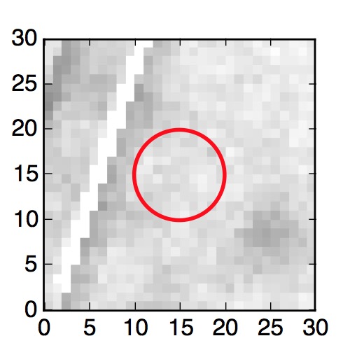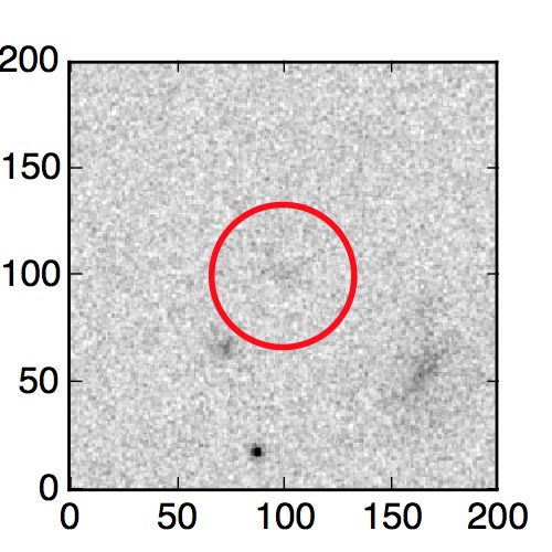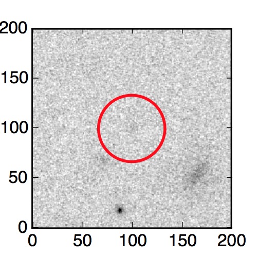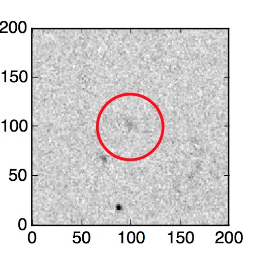 The red circle in the various panels is 1" in radius. The images are 6"x6".
