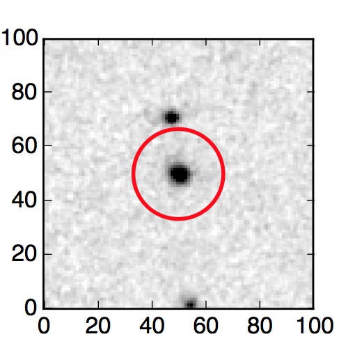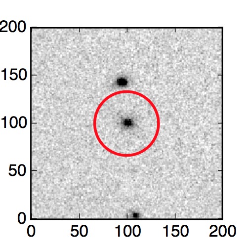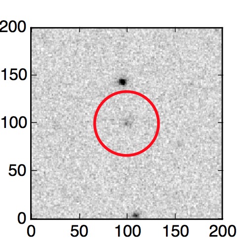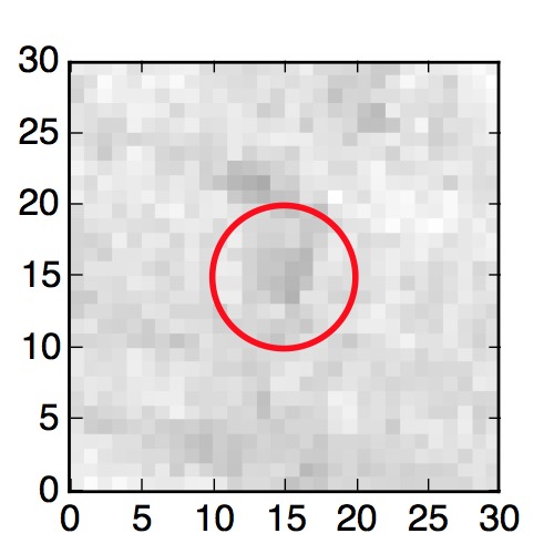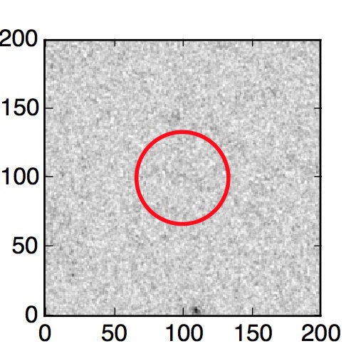 The red circle in the various panels is 1" in radius. The images are 6"x6".