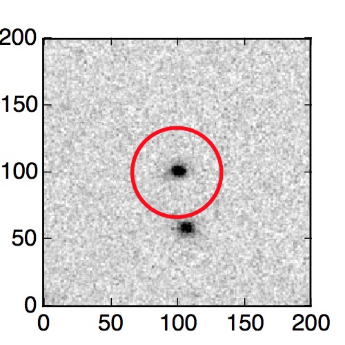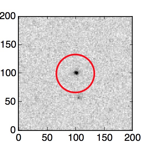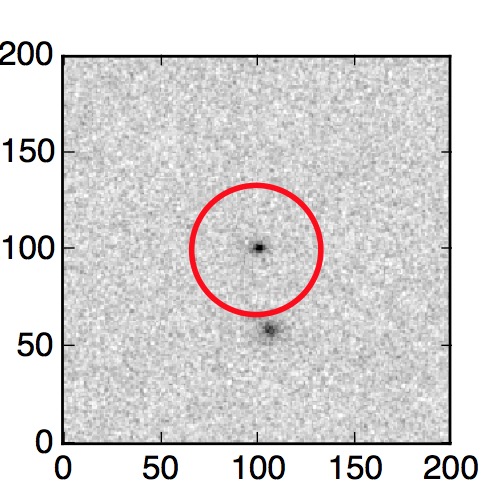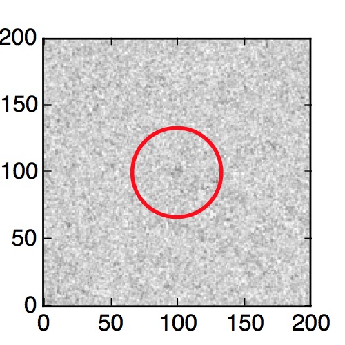 The red circle in the various panels is 1" in radius. The images are 6"x6".