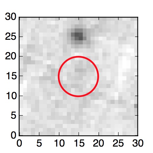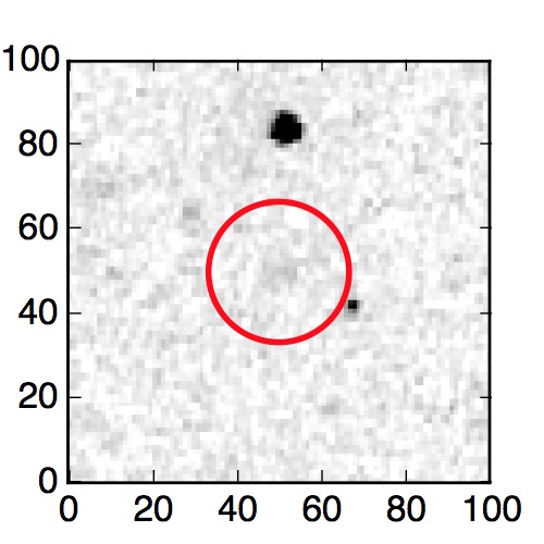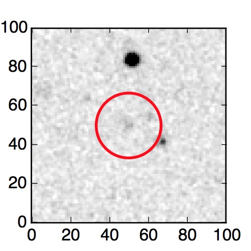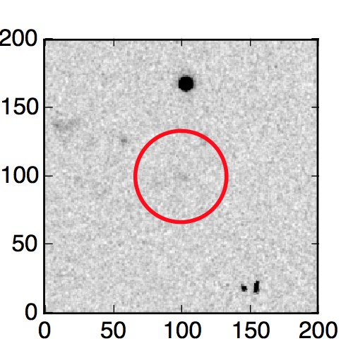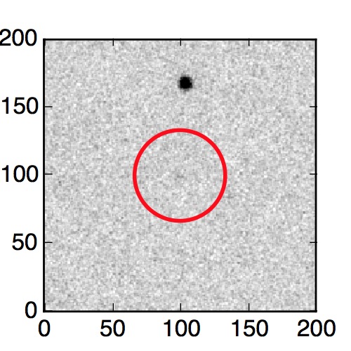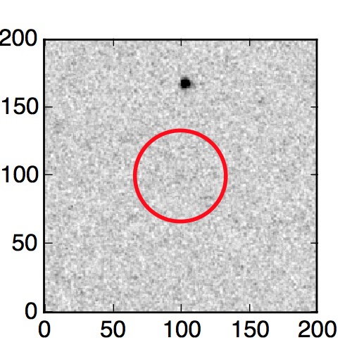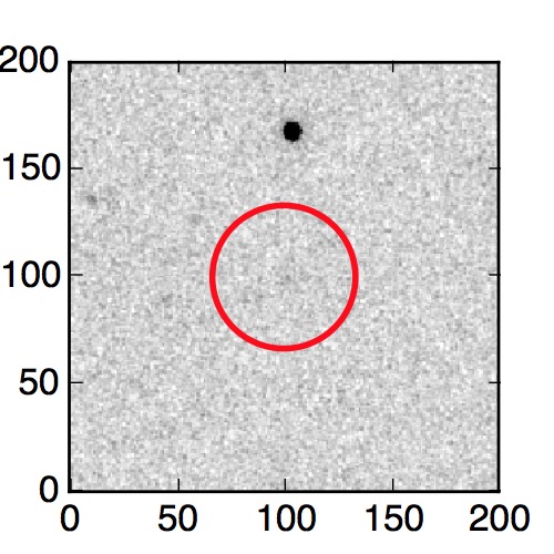 The red circle in the various panels is 1" in radius. The images are 6"x6".
