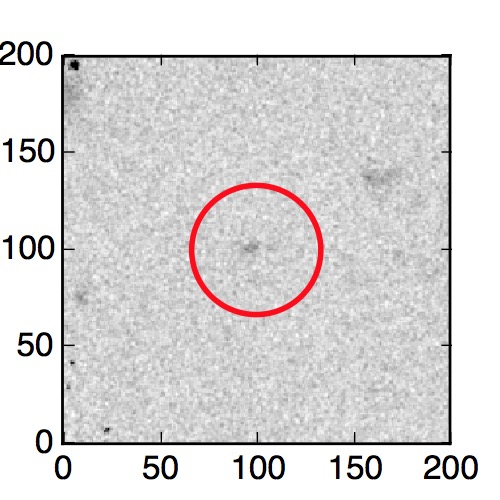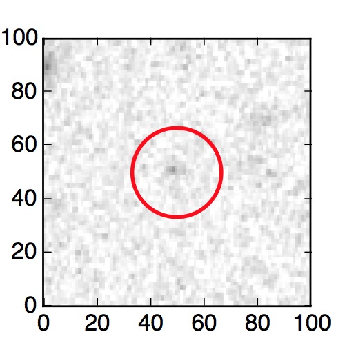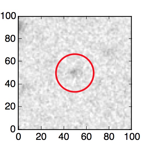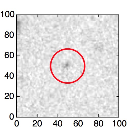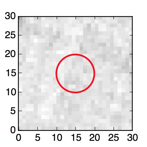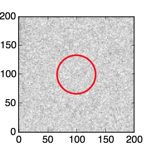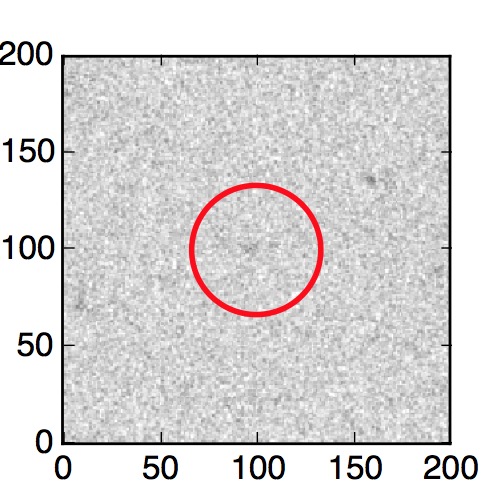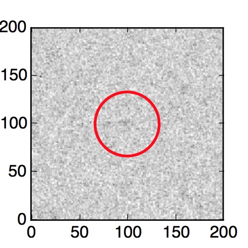 The red circle in the various panels is 1" in radius. The images are 6"x6".