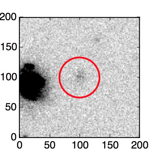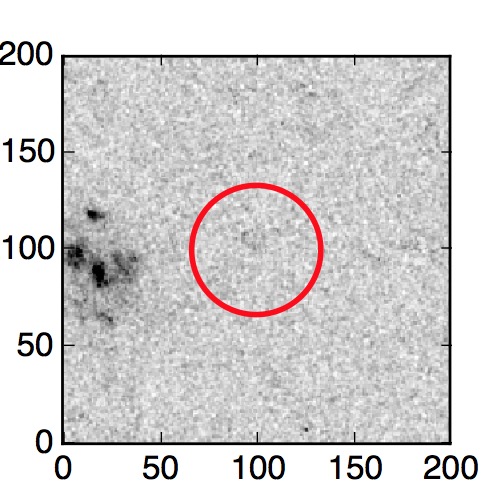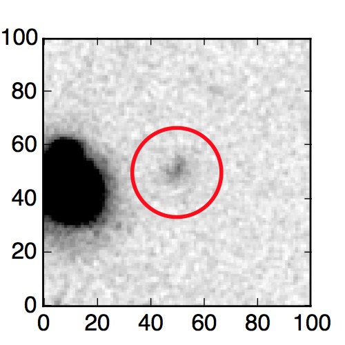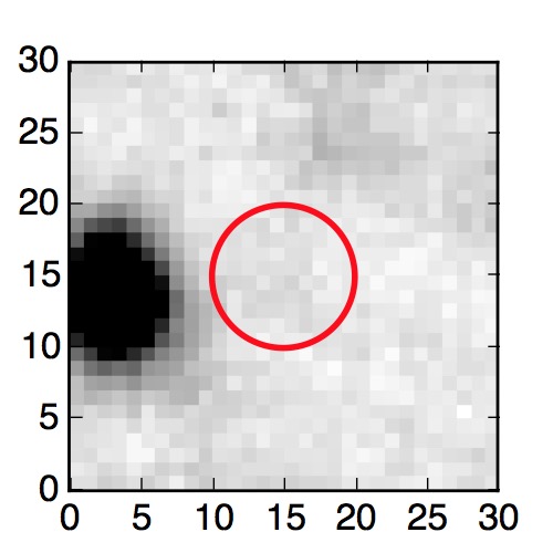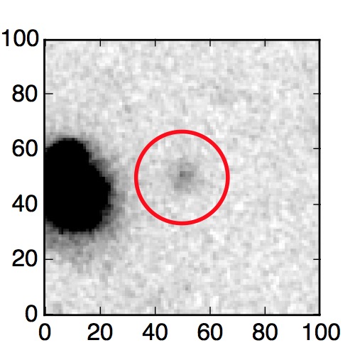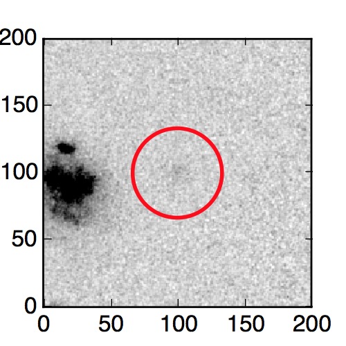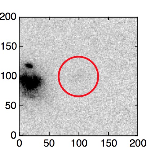 The red circle in the various panels is 1" in radius. The images are 6"x6".