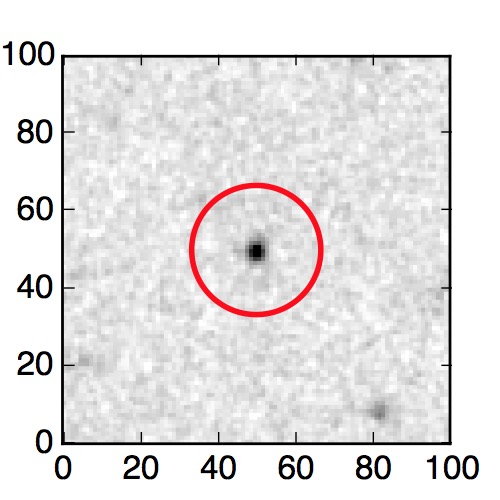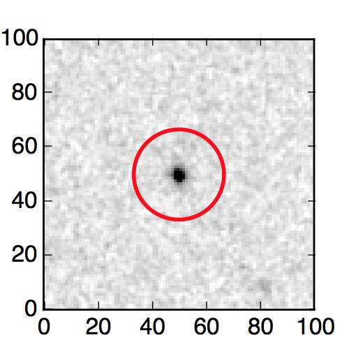 The red circle in the various panels is 1" in radius. The images are 6"x6".