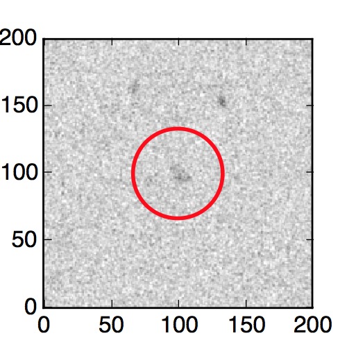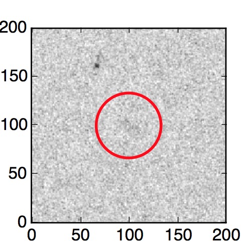 The red circle in the various panels is 1" in radius. The images are 6"x6".