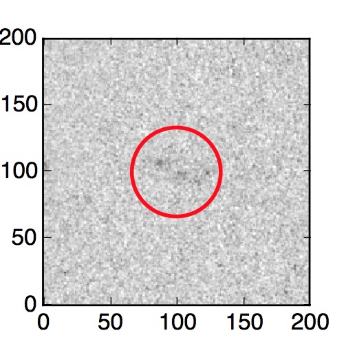 The red circle in the various panels is 1" in radius. The images are 6"x6".