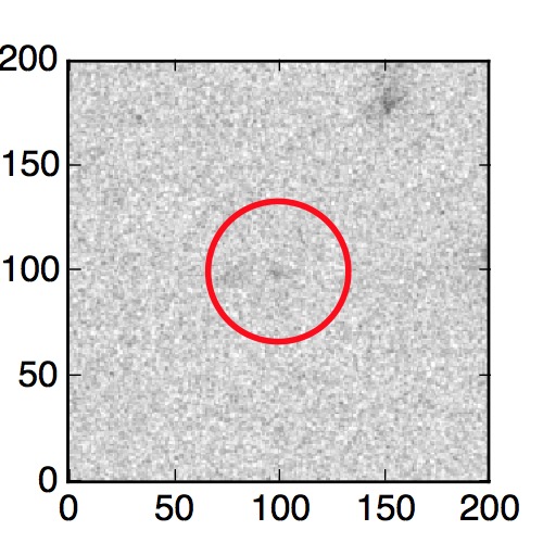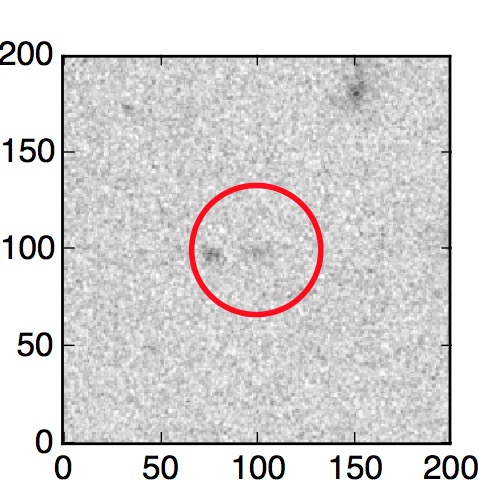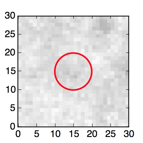 The red circle in the various panels is 1" in radius. The images are 6"x6".
