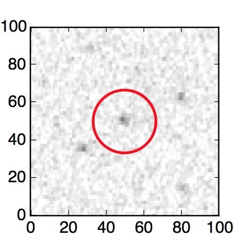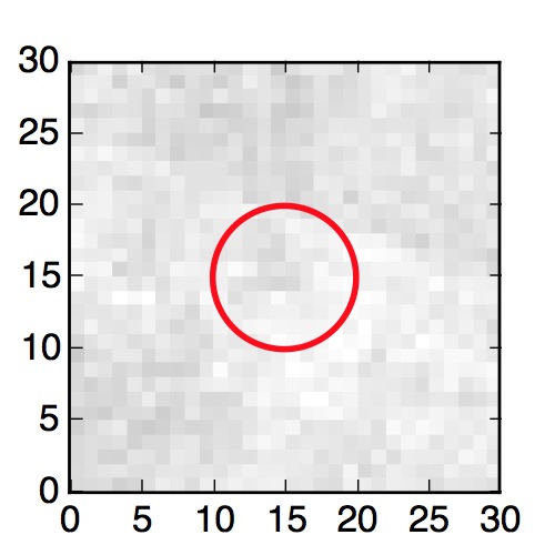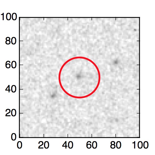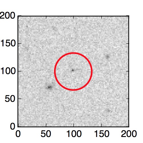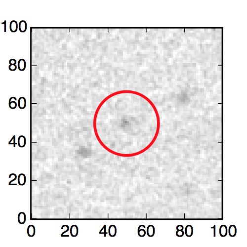 The red circle in the various panels is 1" in radius. The images are 6"x6".