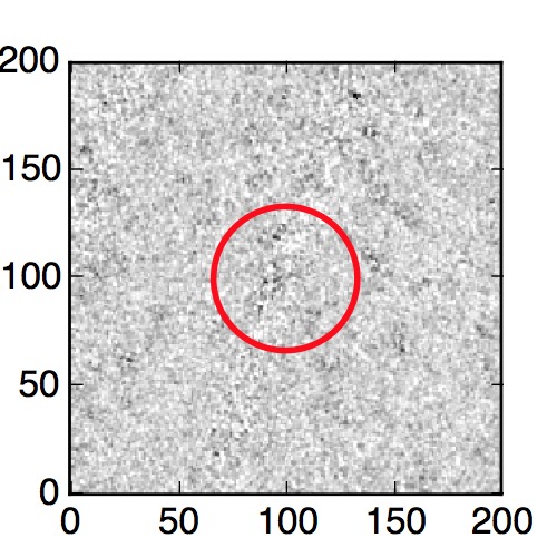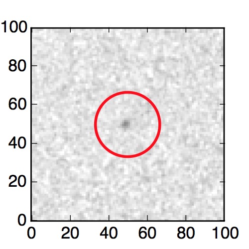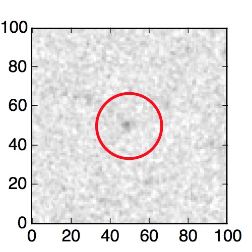 The red circle in the various panels is 1" in radius. The images are 6"x6".