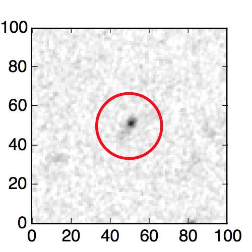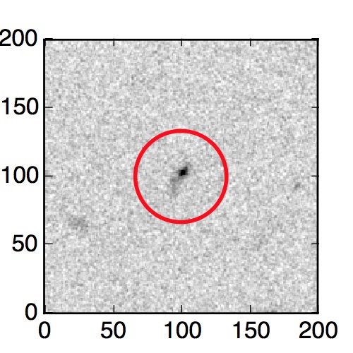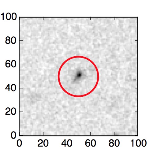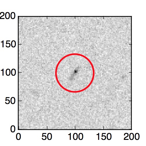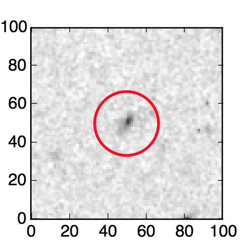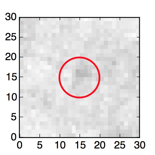 The red circle in the various panels is 1" in radius. The images are 6"x6".