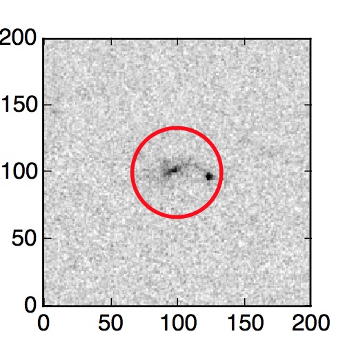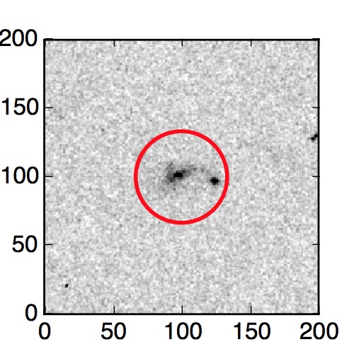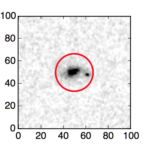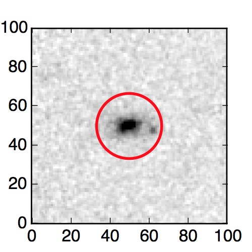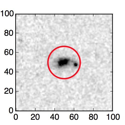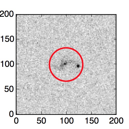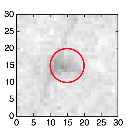 The red circle in the various panels is 1" in radius. The images are 6"x6".