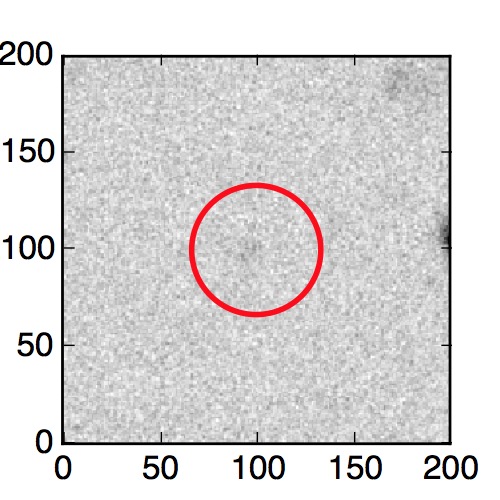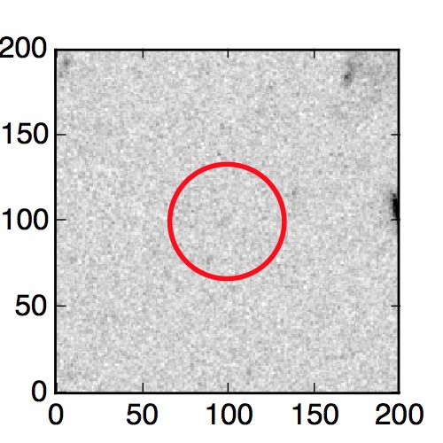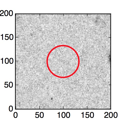 The red circle in the various panels is 1" in radius. The images are 6"x6".