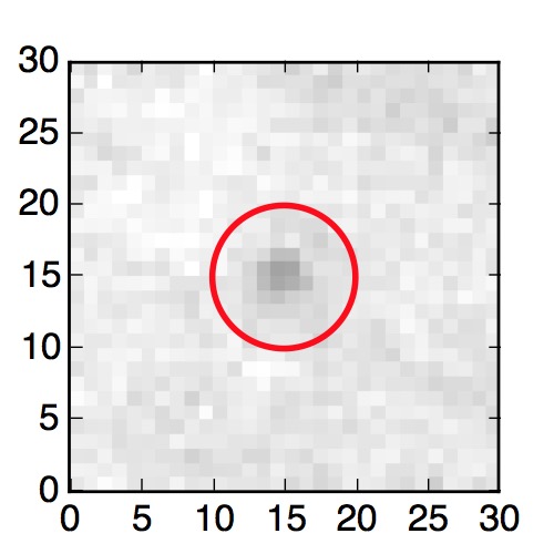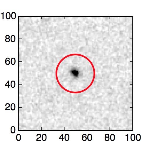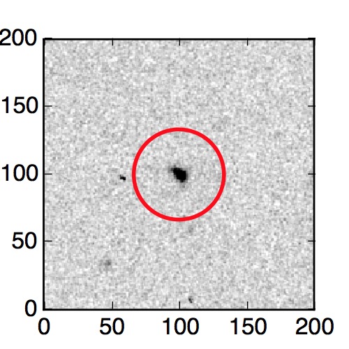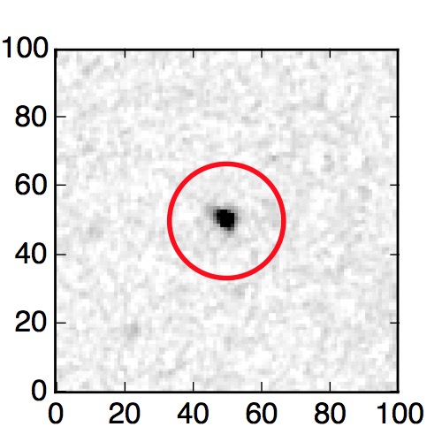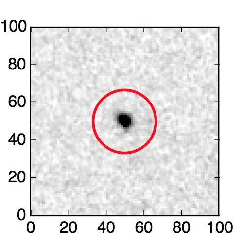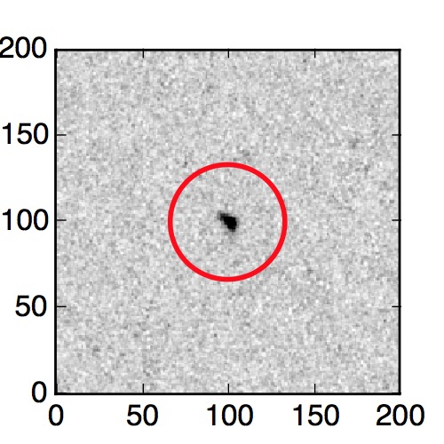 The red circle in the various panels is 1" in radius. The images are 6"x6".