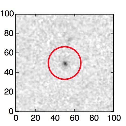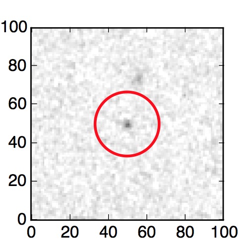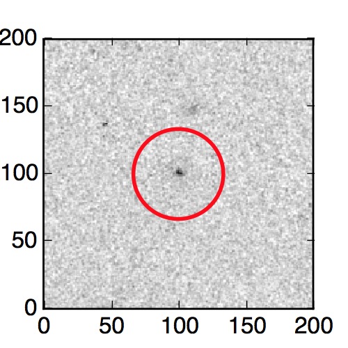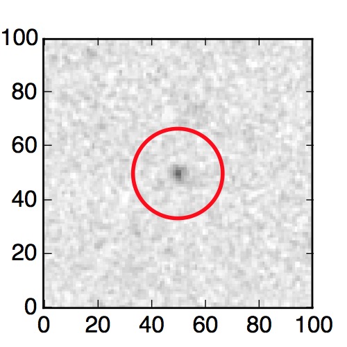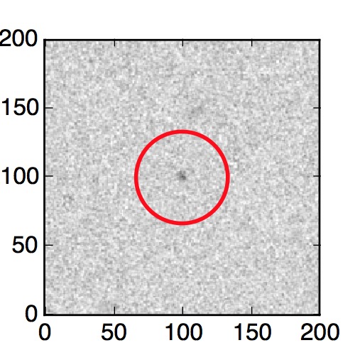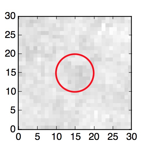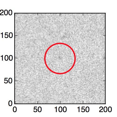 The red circle in the various panels is 1" in radius. The images are 6"x6".