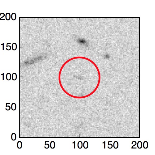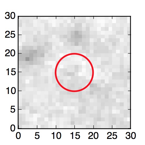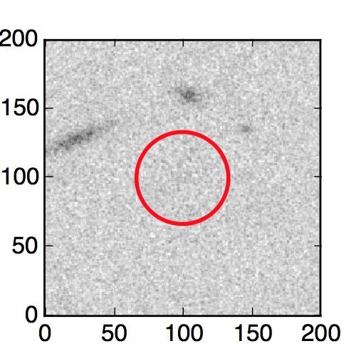 The red circle in the various panels is 1" in radius. The images are 6"x6".