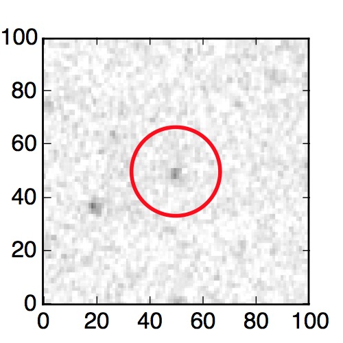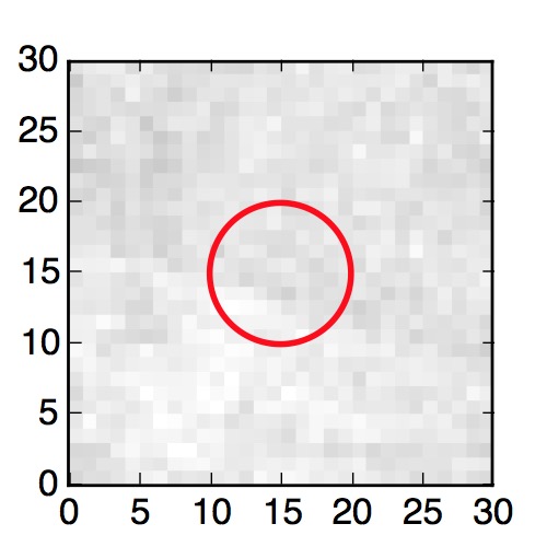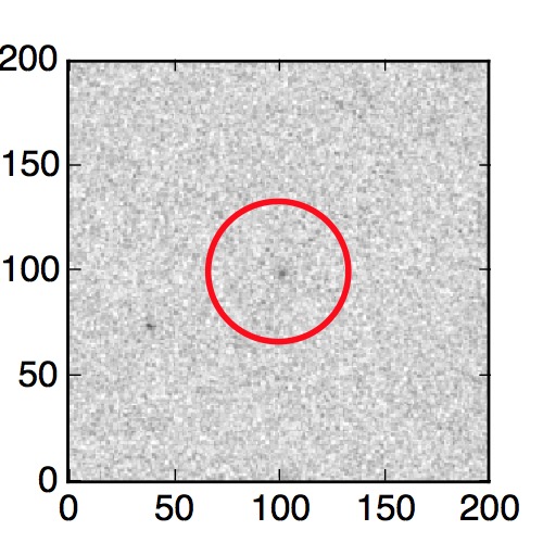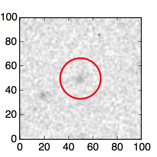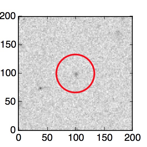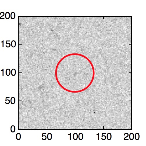 The red circle in the various panels is 1" in radius. The images are 6"x6".