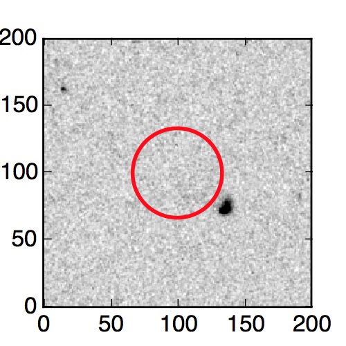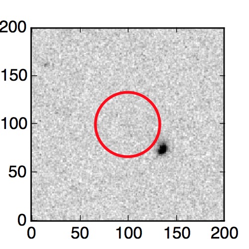 The red circle in the various panels is 1" in radius. The images are 6"x6".