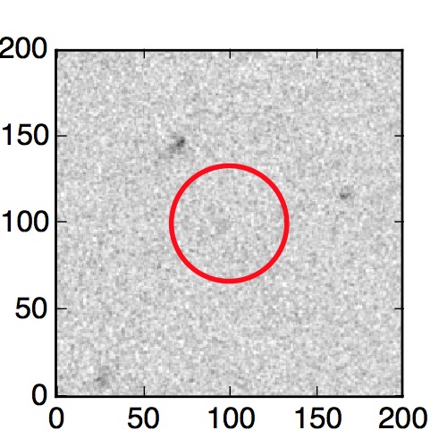 The red circle in the various panels is 1" in radius. The images are 6"x6".