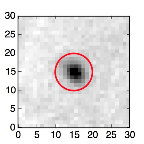 The red circle in the various panels is 1" in radius. The images are 6"x6".