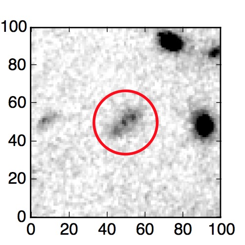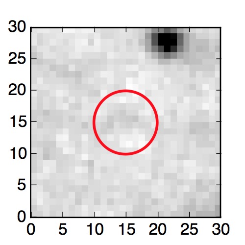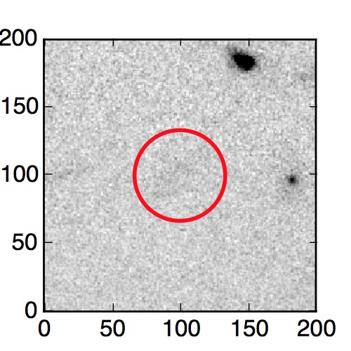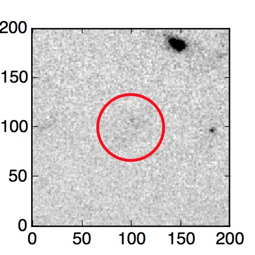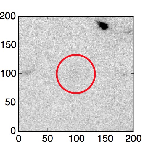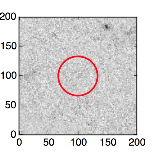 The red circle in the various panels is 1" in radius. The images are 6"x6".