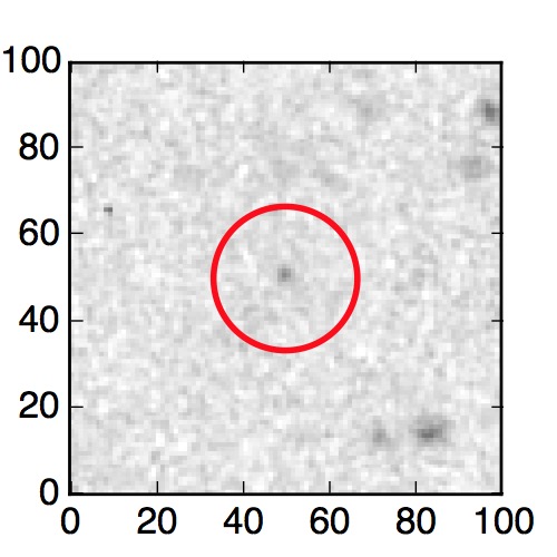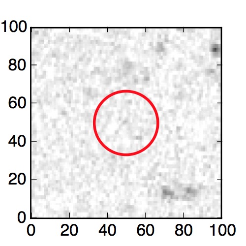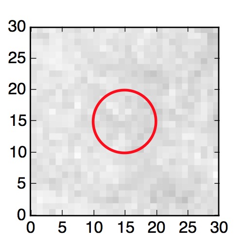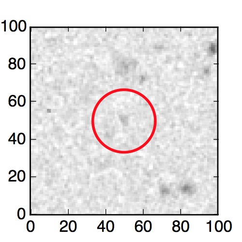The red circle in the various panels is 1" in radius. The images are 6"x6".