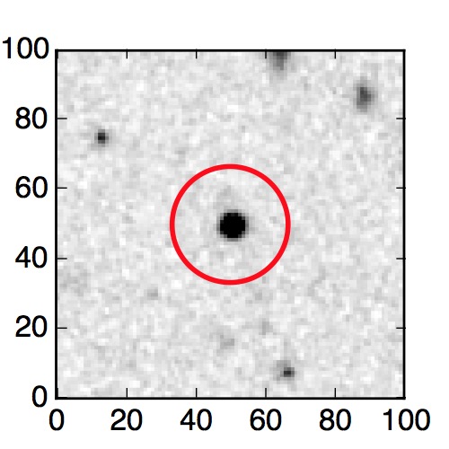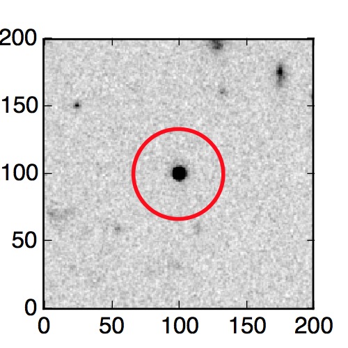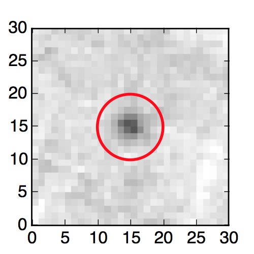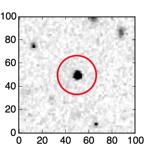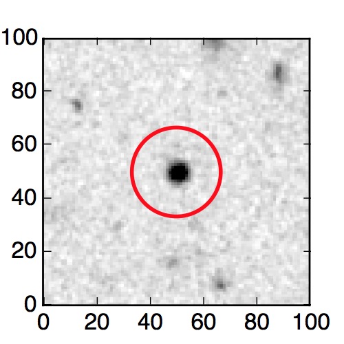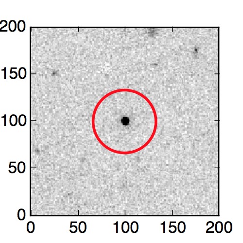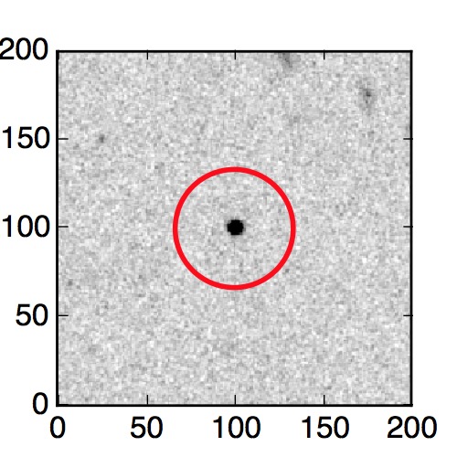 The red circle in the various panels is 1" in radius. The images are 6"x6".