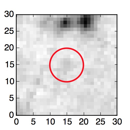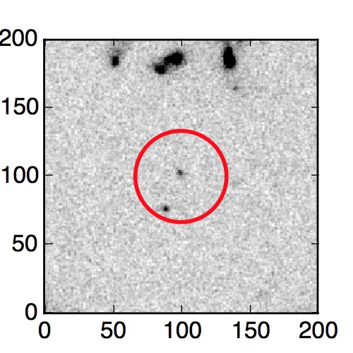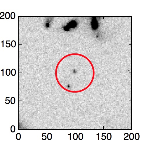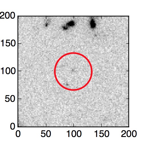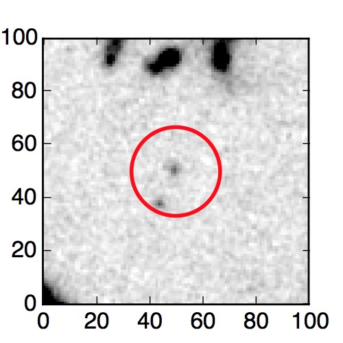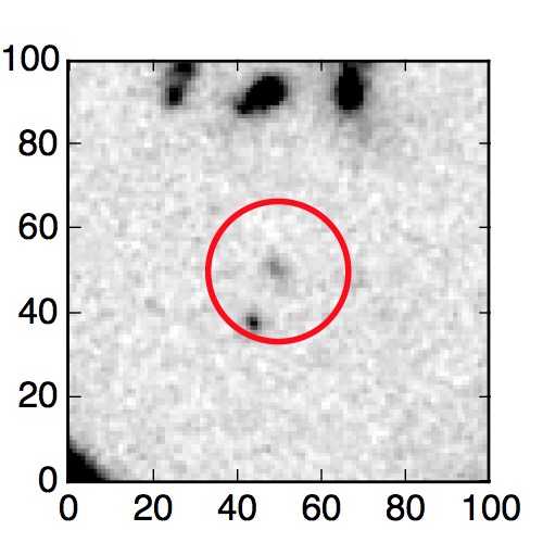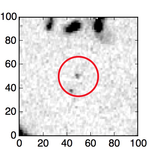The red circle in the various panels is 1" in radius. The images are 6"x6".