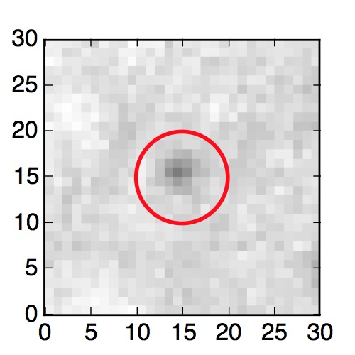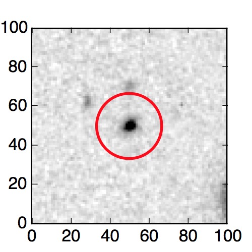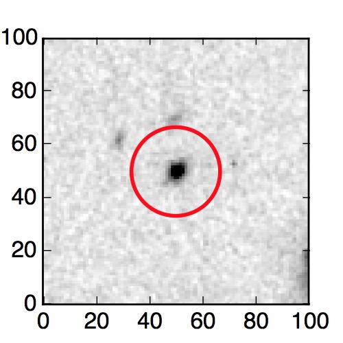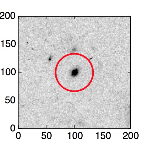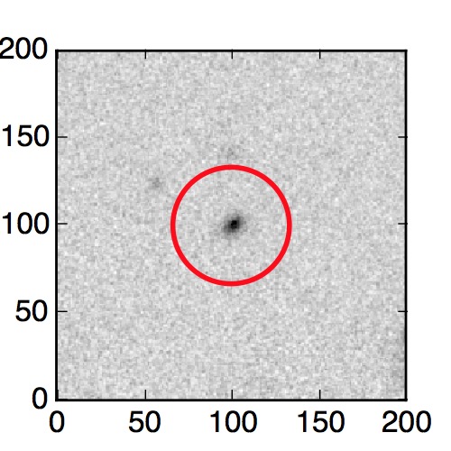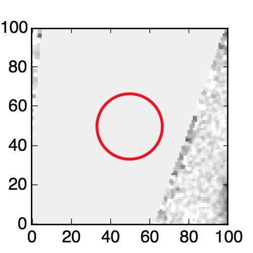 The red circle in the various panels is 1" in radius. The images are 6"x6".