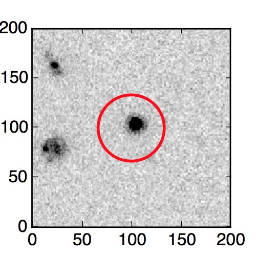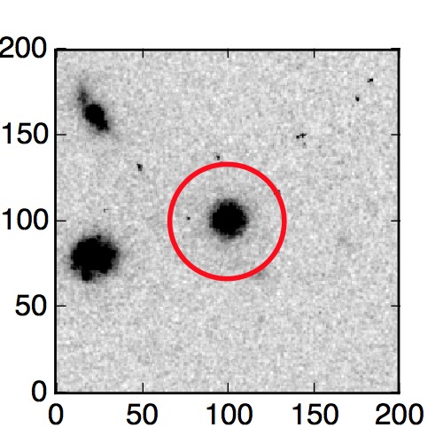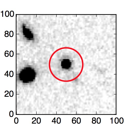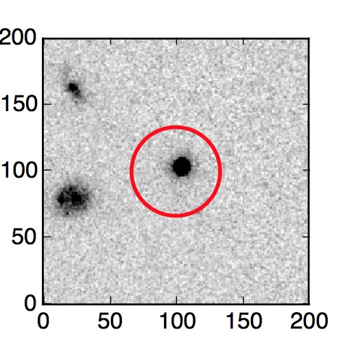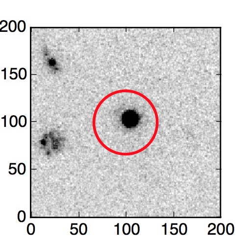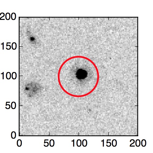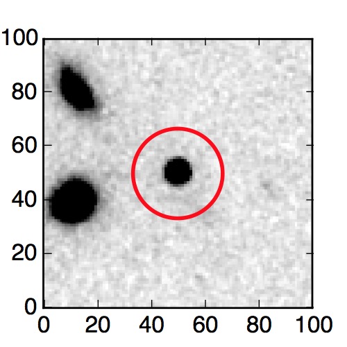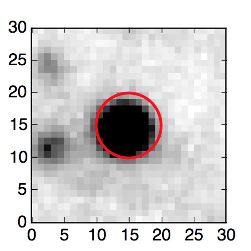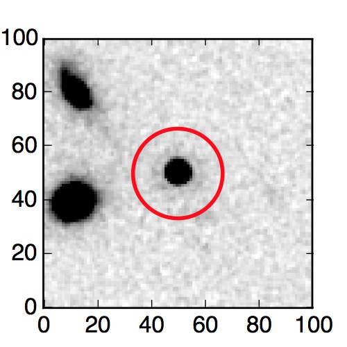 The red circle in the various panels is 1" in radius. The images are 6"x6".