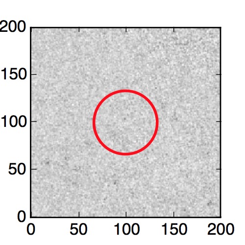 The red circle in the various panels is 1" in radius. The images are 6"x6".