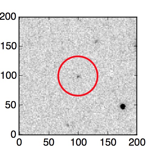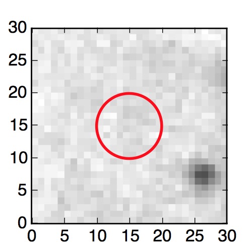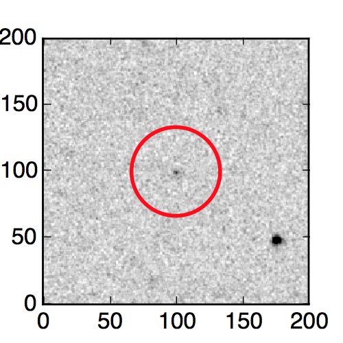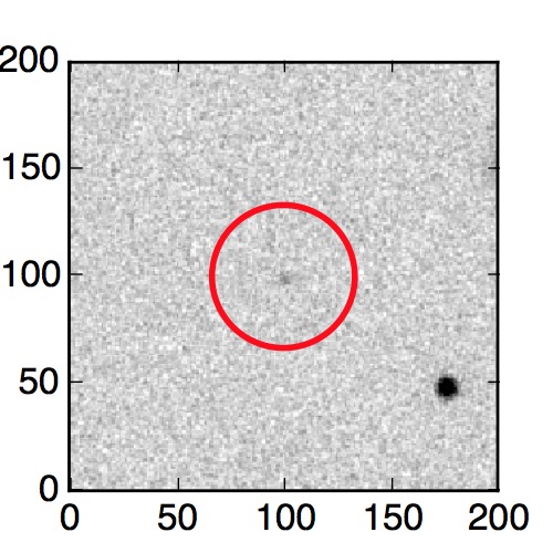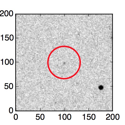 The red circle in the various panels is 1" in radius. The images are 6"x6".