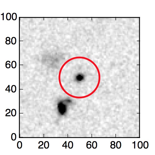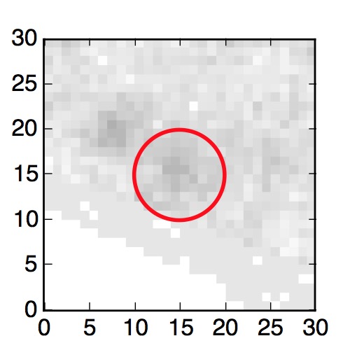 The red circle in the various panels is 1" in radius. The images are 6"x6".