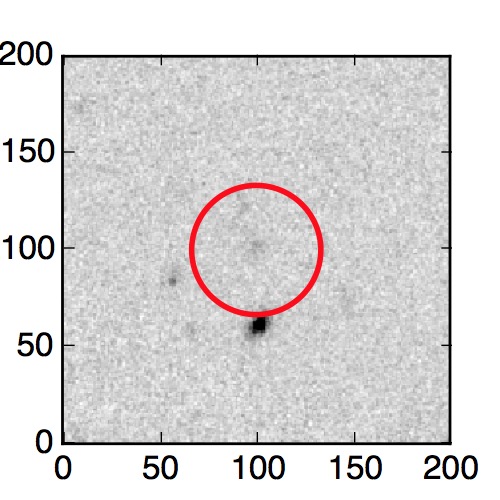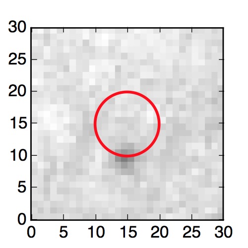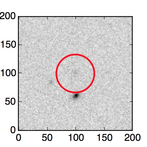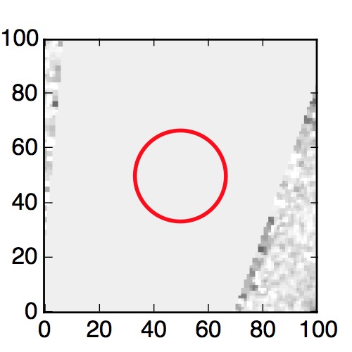 The red circle in the various panels is 1" in radius. The images are 6"x6".