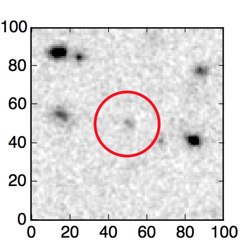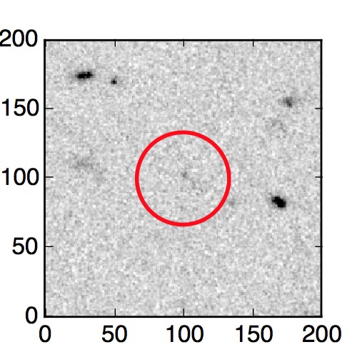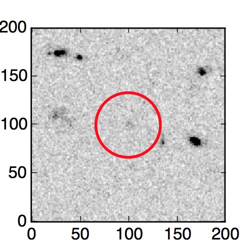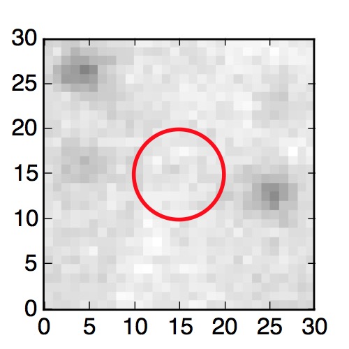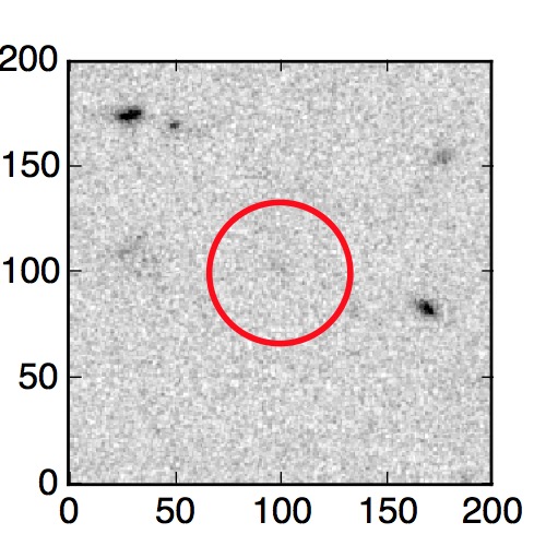 The red circle in the various panels is 1" in radius. The images are 6"x6".