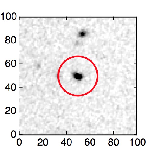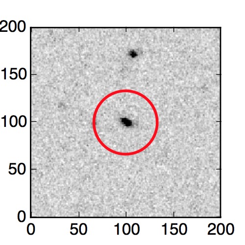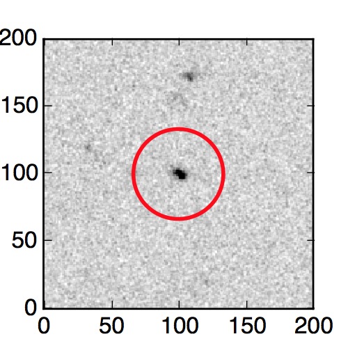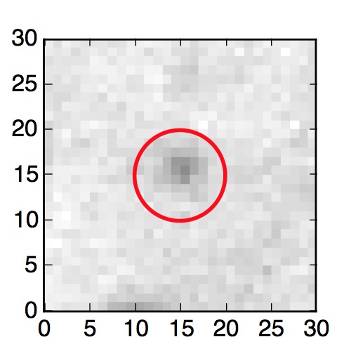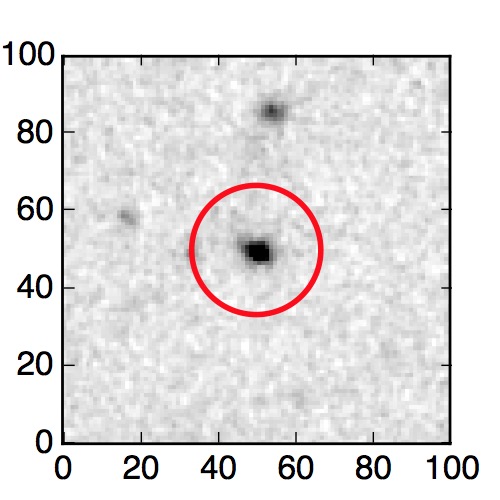 The red circle in the various panels is 1" in radius. The images are 6"x6".