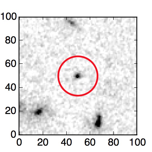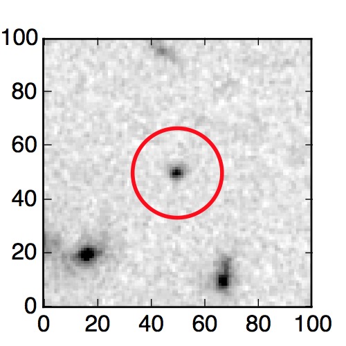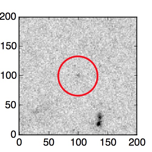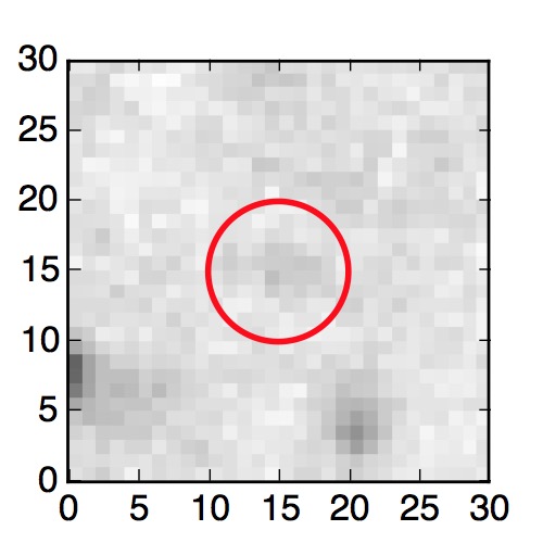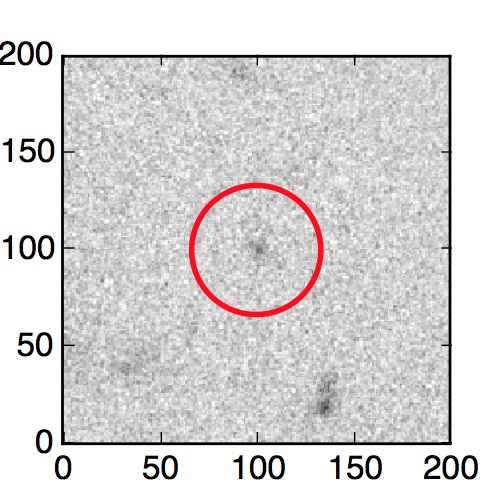 The red circle in the various panels is 1" in radius. The images are 6"x6".
