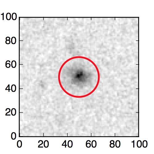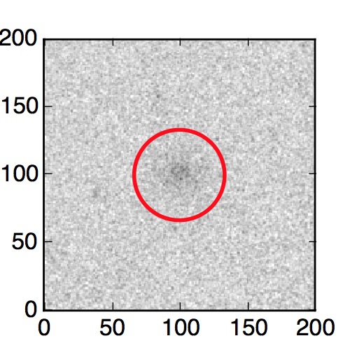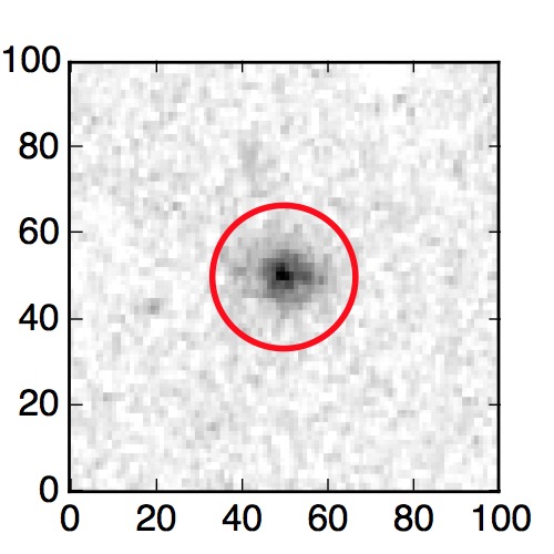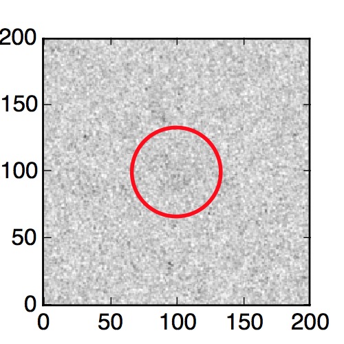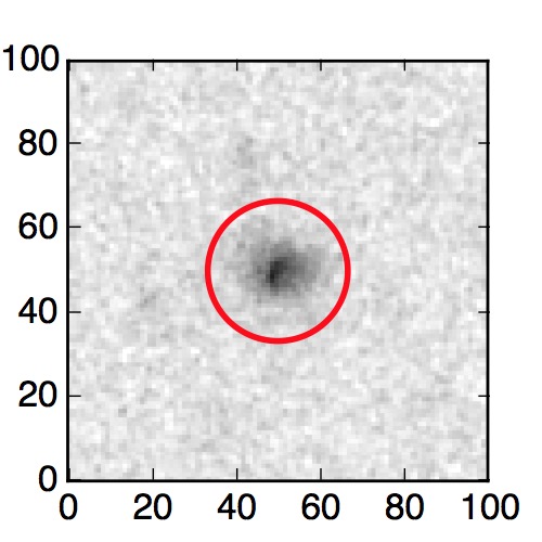 The red circle in the various panels is 1" in radius. The images are 6"x6".