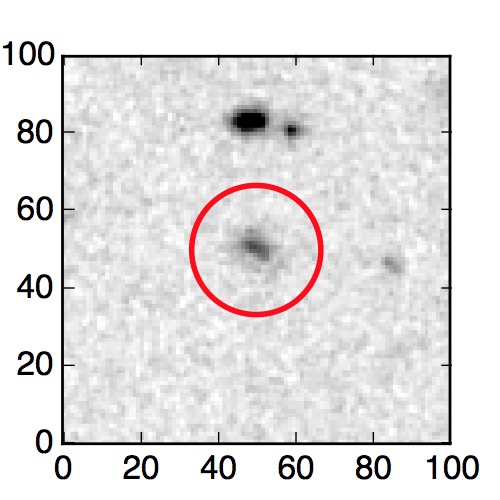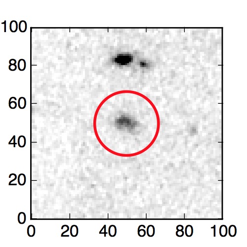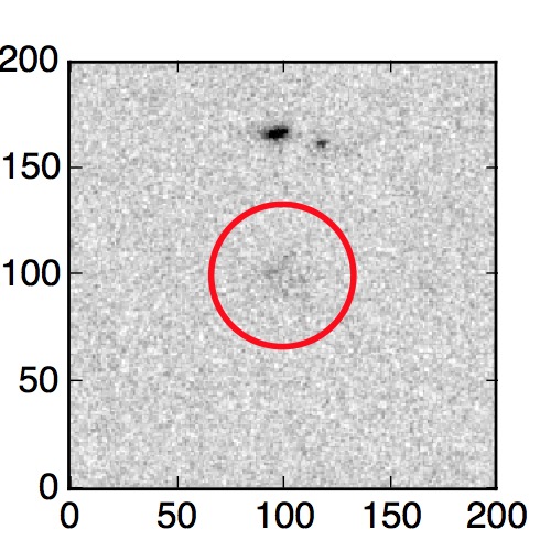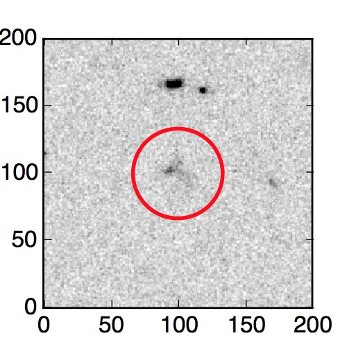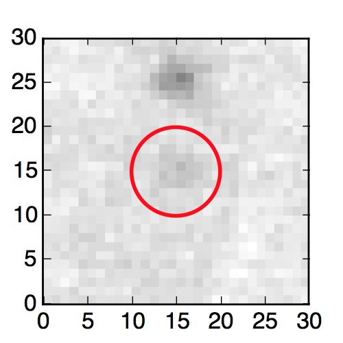 The red circle in the various panels is 1" in radius. The images are 6"x6".