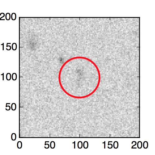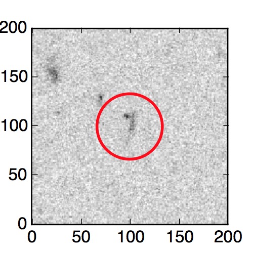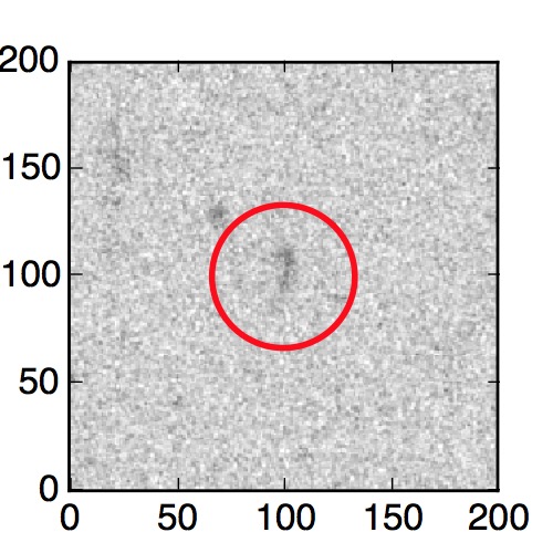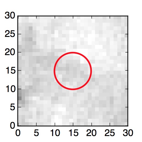 The red circle in the various panels is 1" in radius. The images are 6"x6".