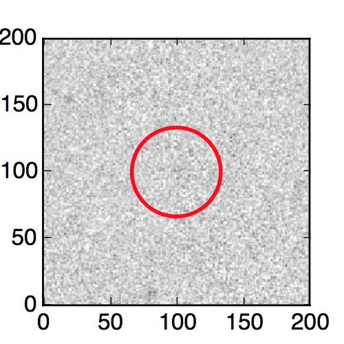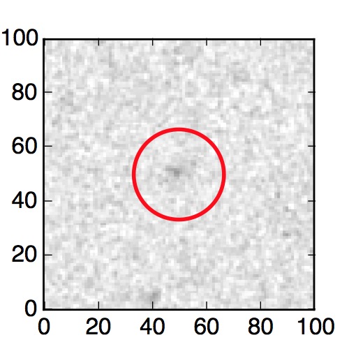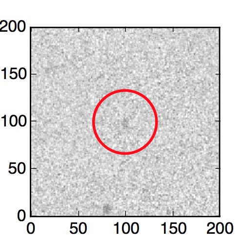 The red circle in the various panels is 1" in radius. The images are 6"x6".