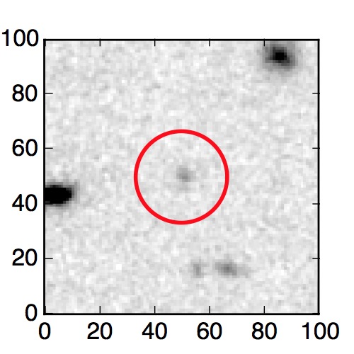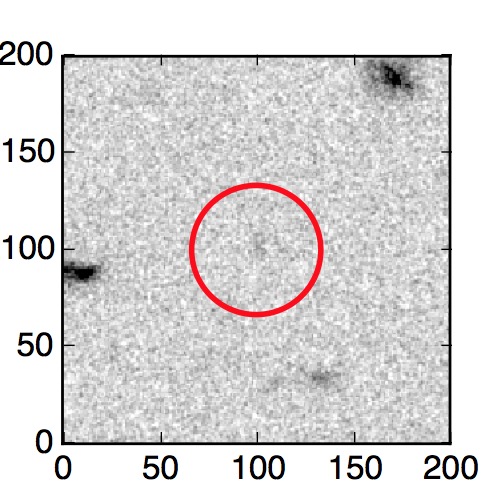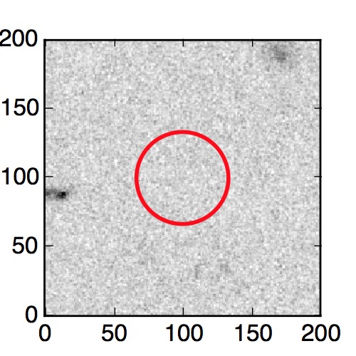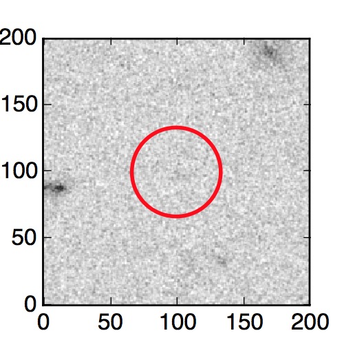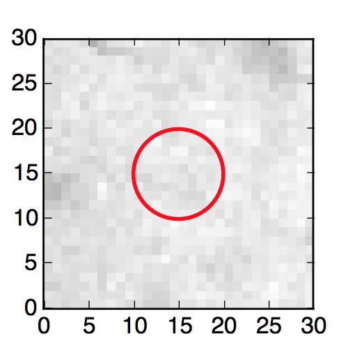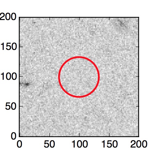 The red circle in the various panels is 1" in radius. The images are 6"x6".