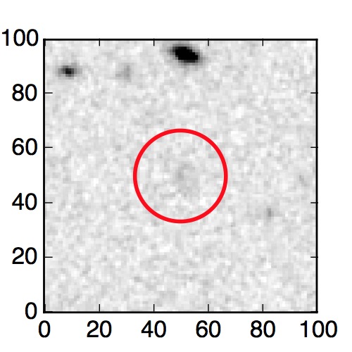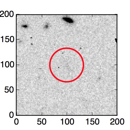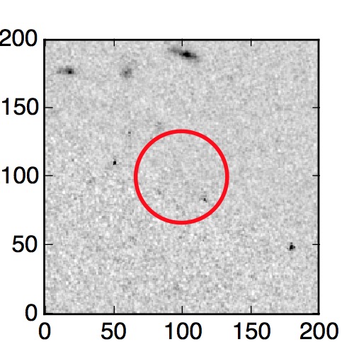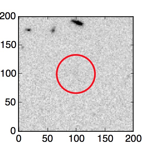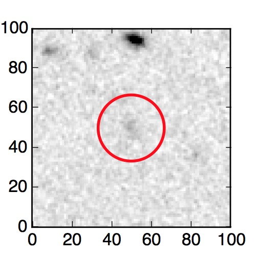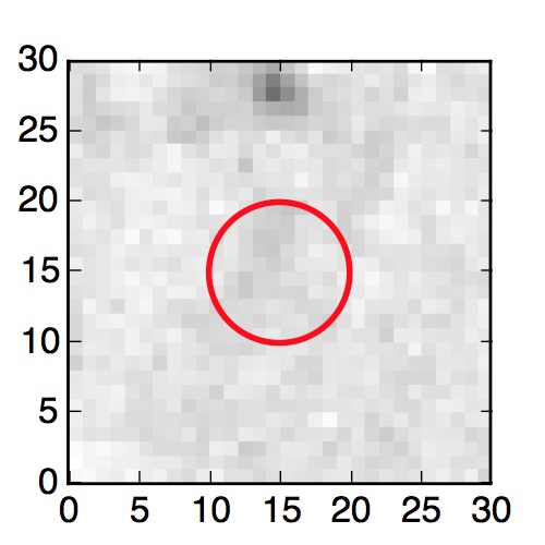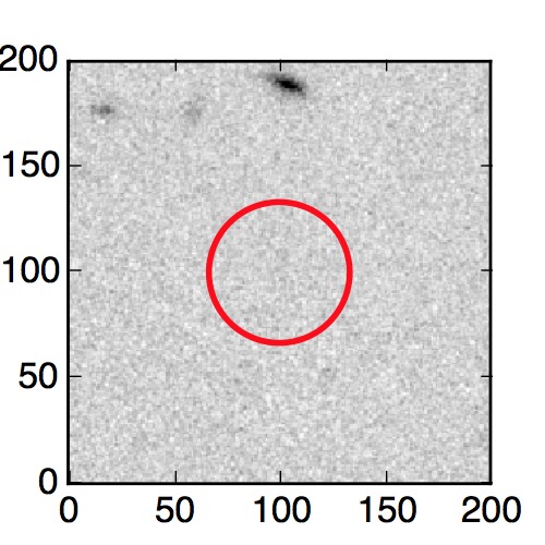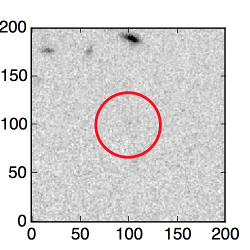 The red circle in the various panels is 1" in radius. The images are 6"x6".