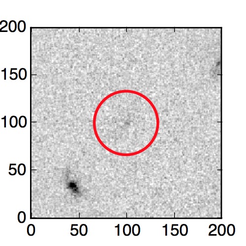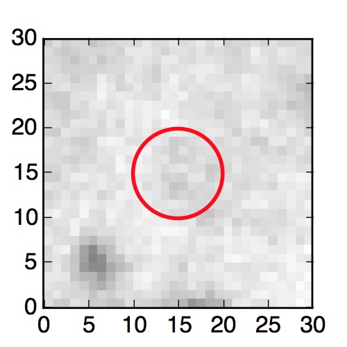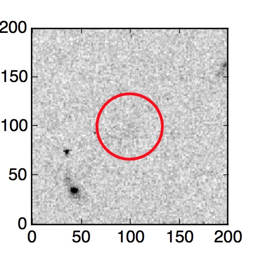 The red circle in the various panels is 1" in radius. The images are 6"x6".